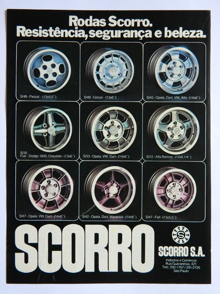 1975, lançamento das rodas scorro com liga de antálio, mais resistentes a consertos que as rodas de magnésio.